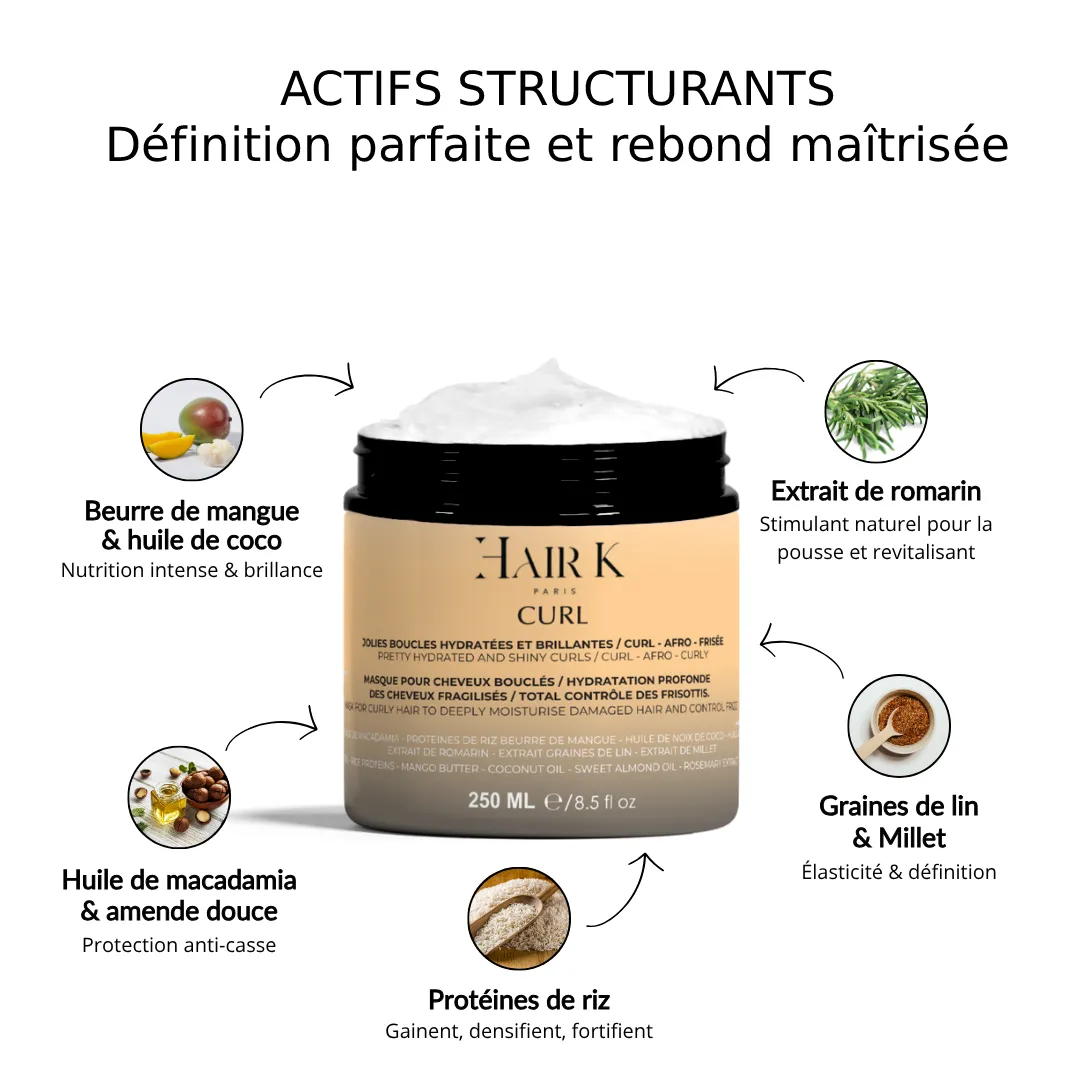 مجموعة تجعيد الشعر - الترطيب والتحديد - الشعر المجعد - المانجو وبذور الكتان